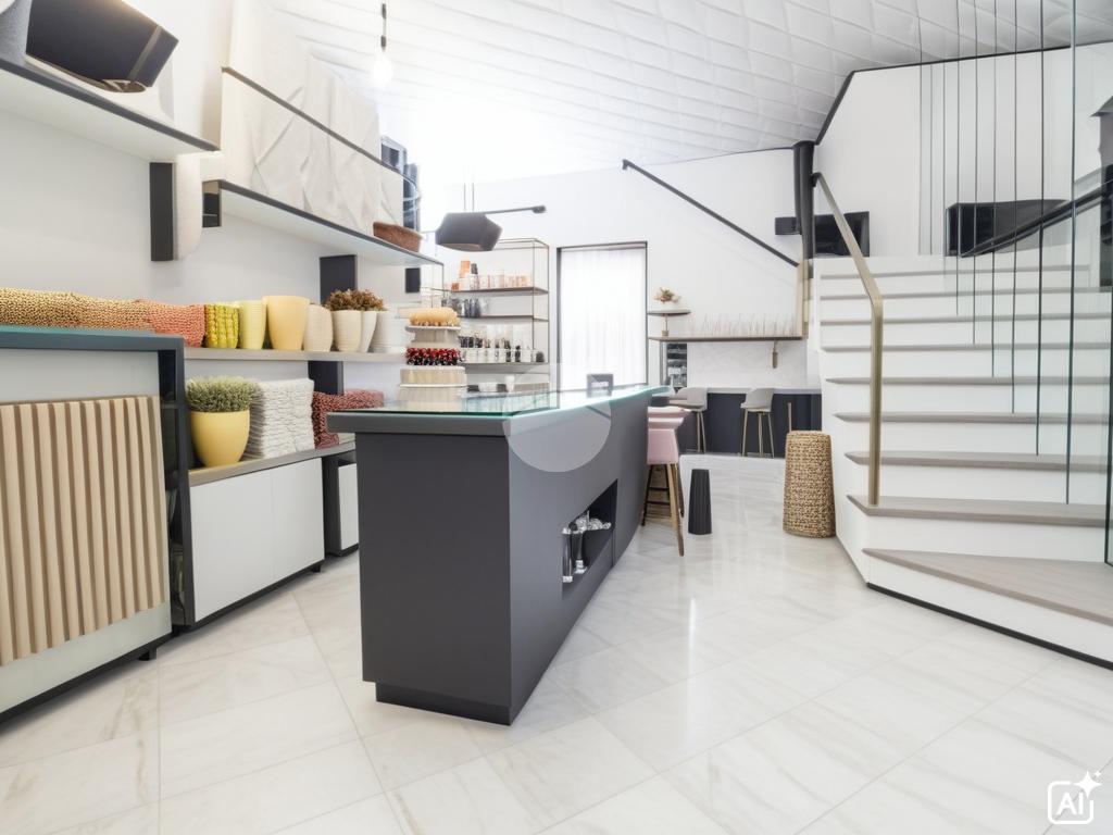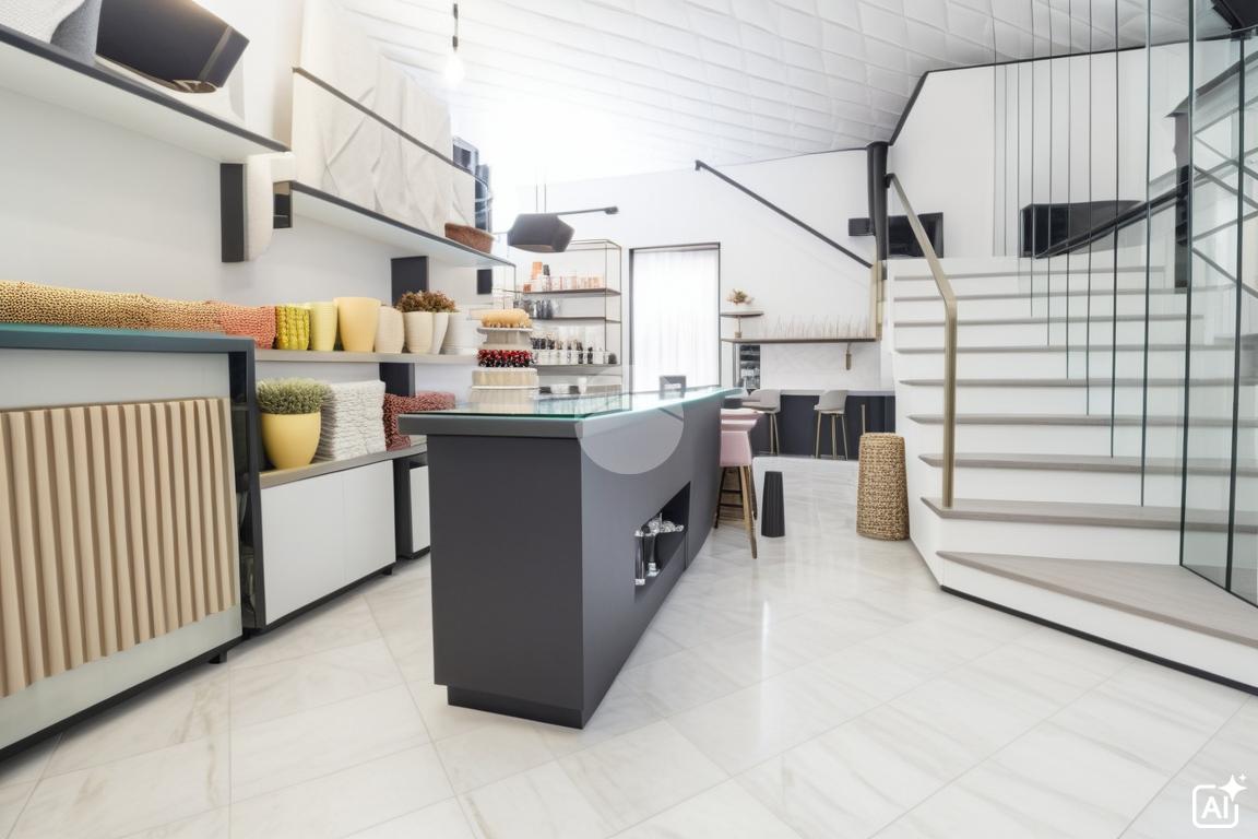 Al piano terreno è presente un locale unico attualmente organizzato con un' intera parete espositiva ed un bancone.