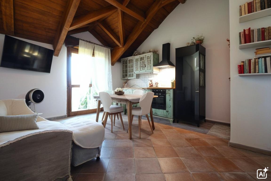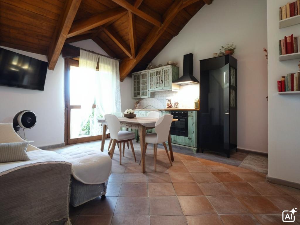 L'appartamento è dotato inoltre di infissi realizzati in legno con vetri doppi, tapparelle automatizzate e portoncino di accesso blindato.