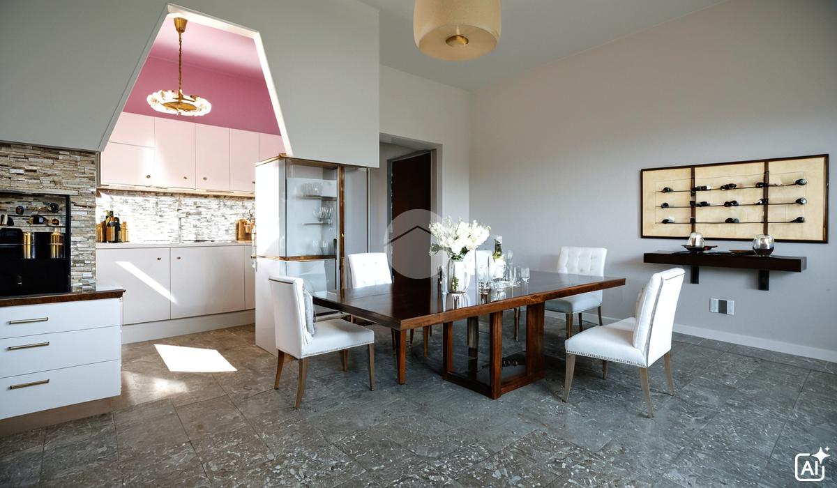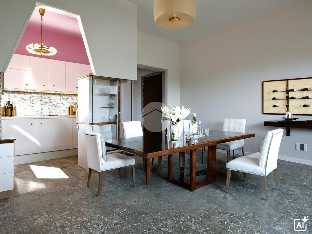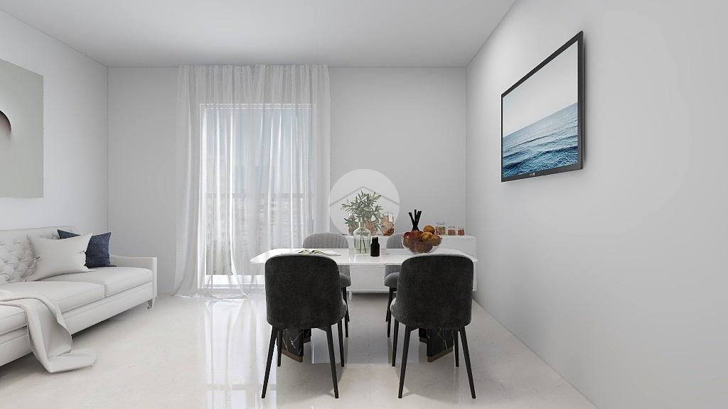 il tinello, di forma quadrata, permette di essere arredato a proprio piacimento sfruttandone le pareti a disposizione; il cucinino presenta anch'esso una pianta quadrata ed è collegato direttamente al soggiorno. La porta finestra illumina l'ambiente e permette di affacciare verso il primo balcone rivolto sulle verdi colline di San Raffaele Cimena.