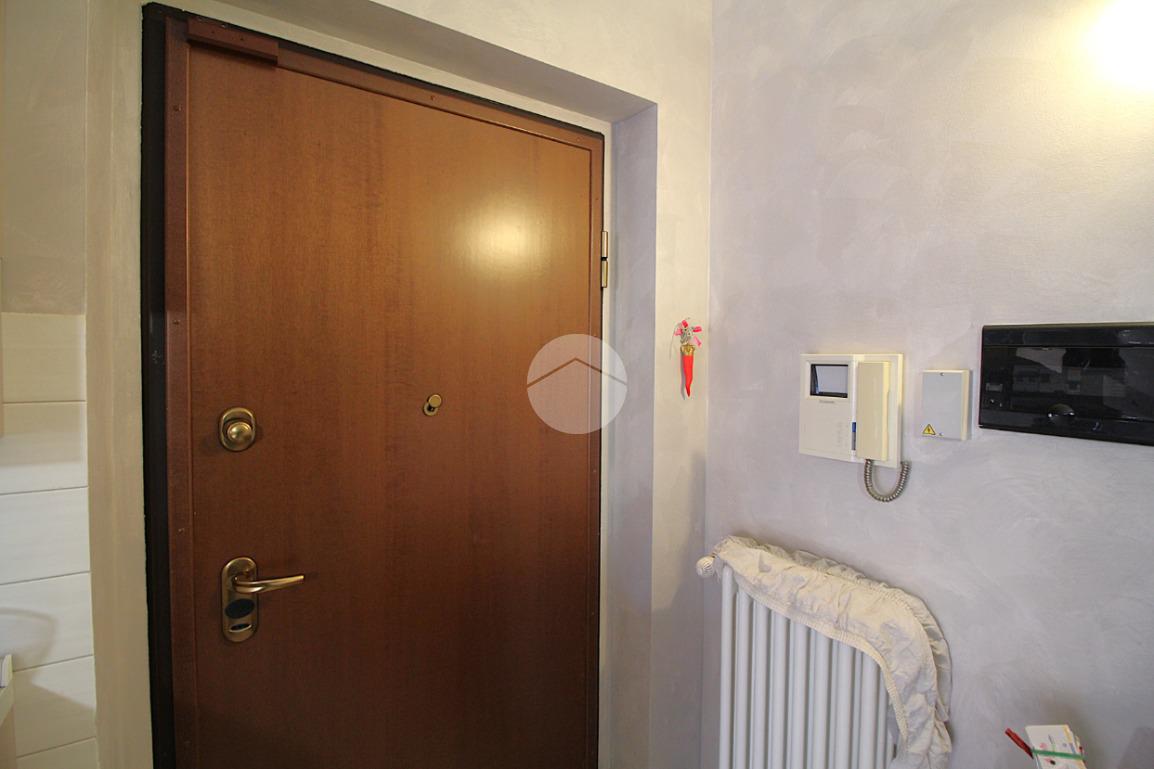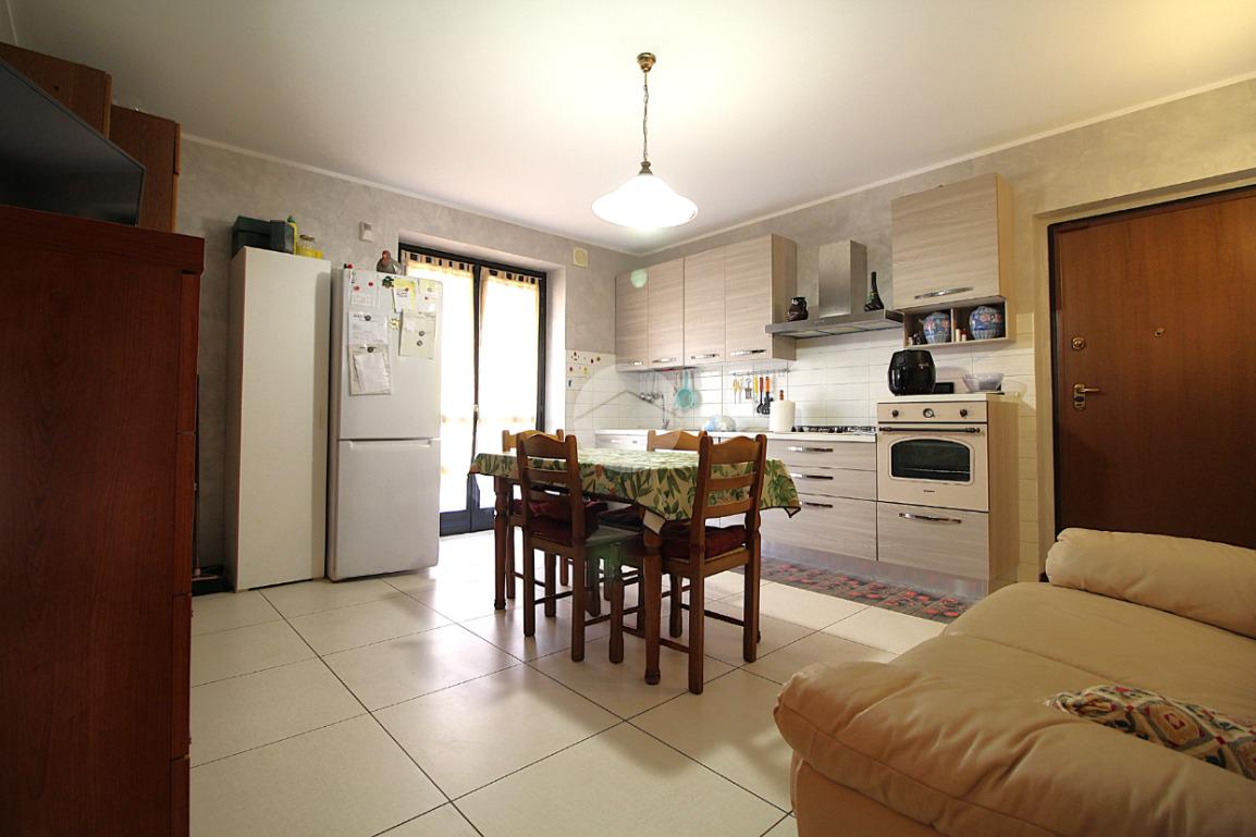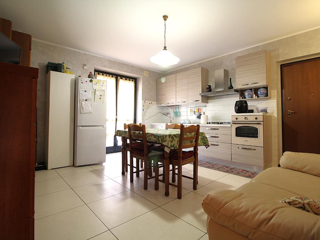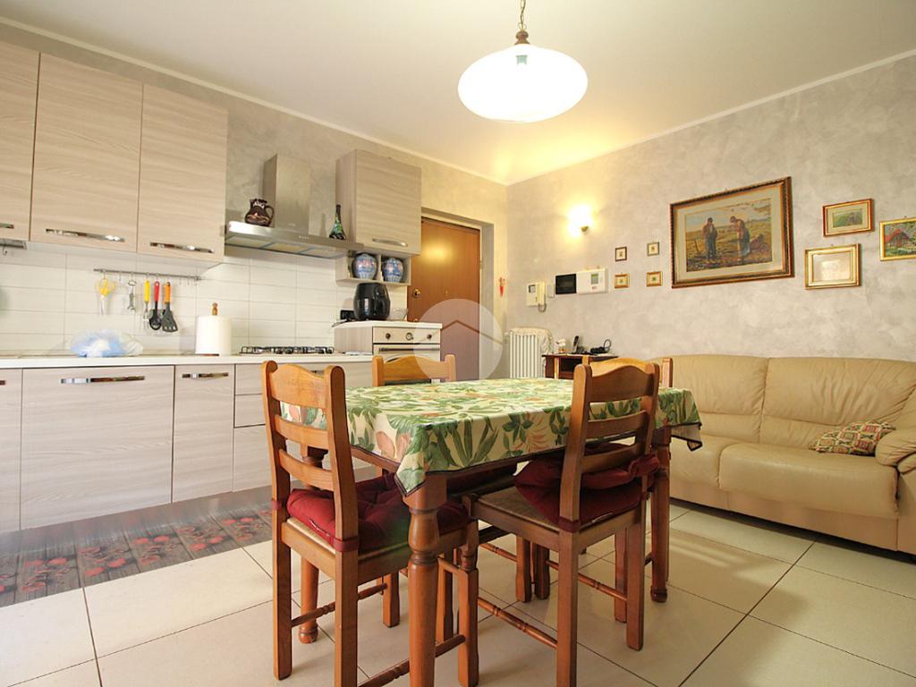 Il portoncino di ingresso blindato apre verso la spaziosa zona giorno. L'ambiente è dotato di una comoda parete cottura lineare, ed è possibile sfruttare la parete opposta per il mobile del soggiorno. La portafinestra illumina la stanza e conduce al primo balcone.
