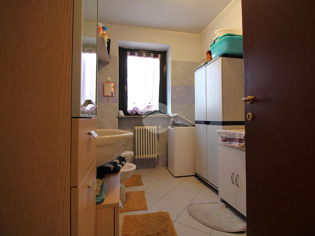 Il bagno è dotato di doccia, sanitari moderni e lavatoio.