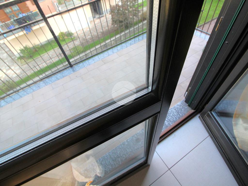 L'appartamento è dotato di impianto di riscaldamento semiautonomo, collegato ai pannelli solari condominiali, per cui è possibile gestire i consumi in autonomia. Gli infissi sono realizzati in legno con vetri doppi, e sono presenti le zanzariere, tre condizionatori con funzione inverter, tende estive e sistema di antifurto.