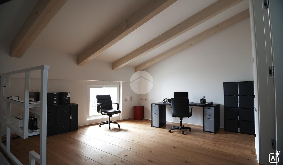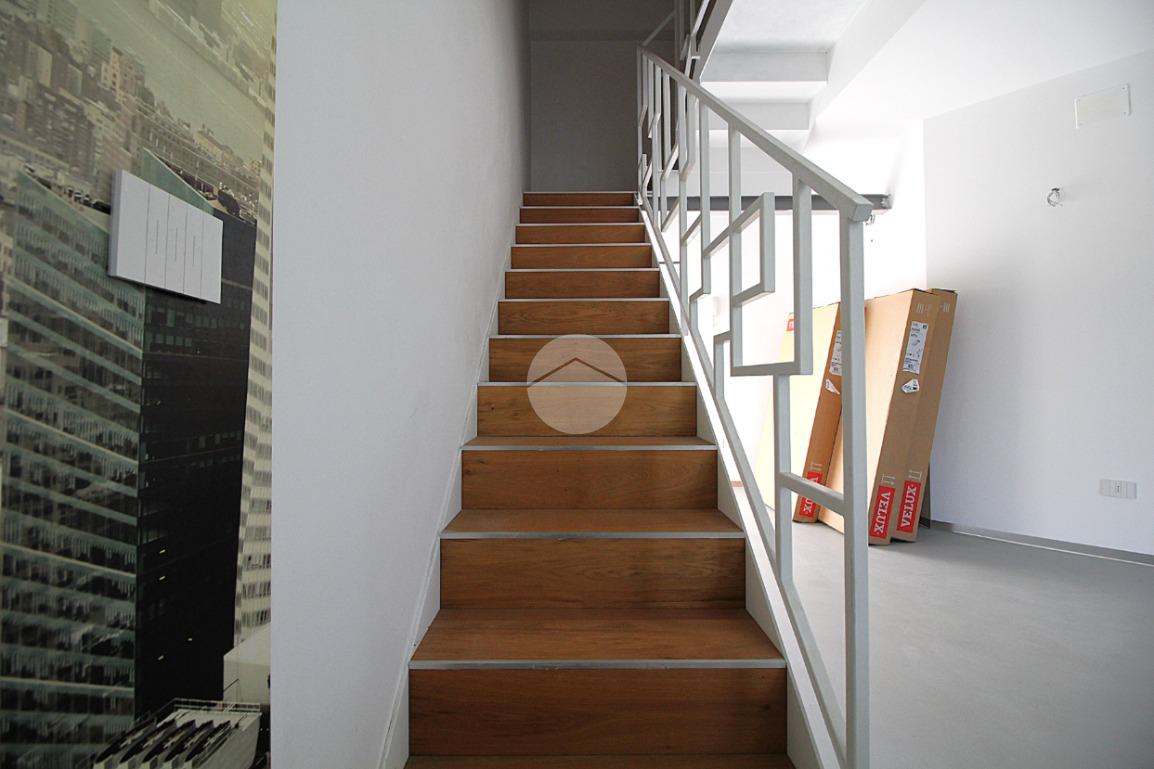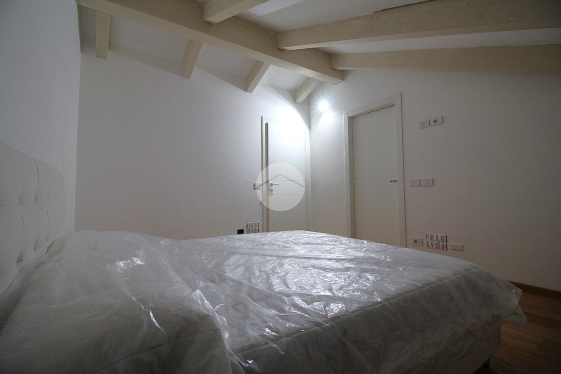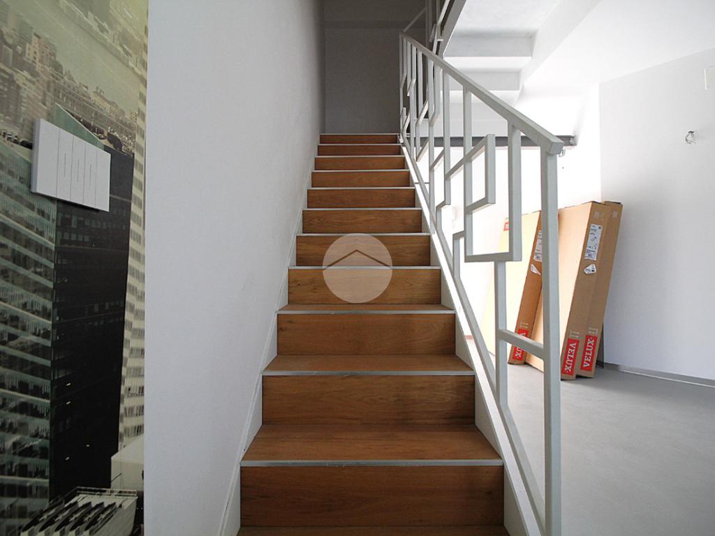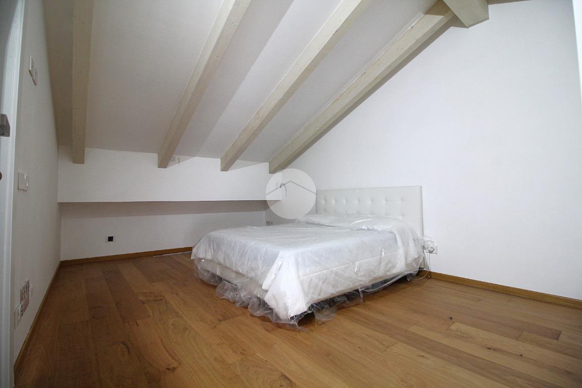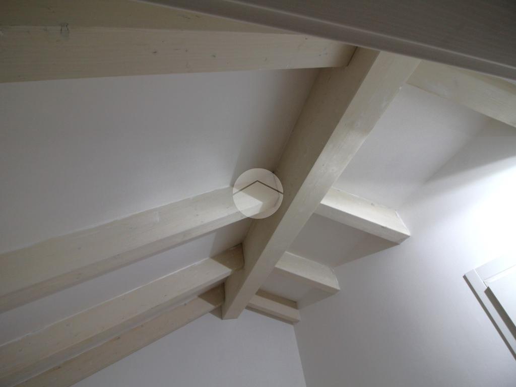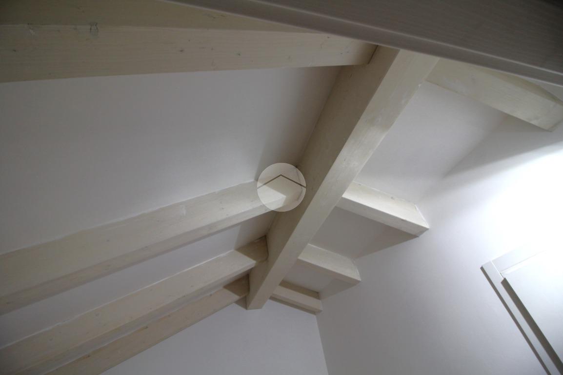 La scala interna, realizzata in ferro e rivestita in legno, conduce al piano mansardato, in cui l'intera zona notte è caratterizzata dal soffitto in legno a vista di colore bianco.
