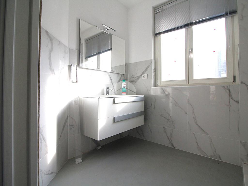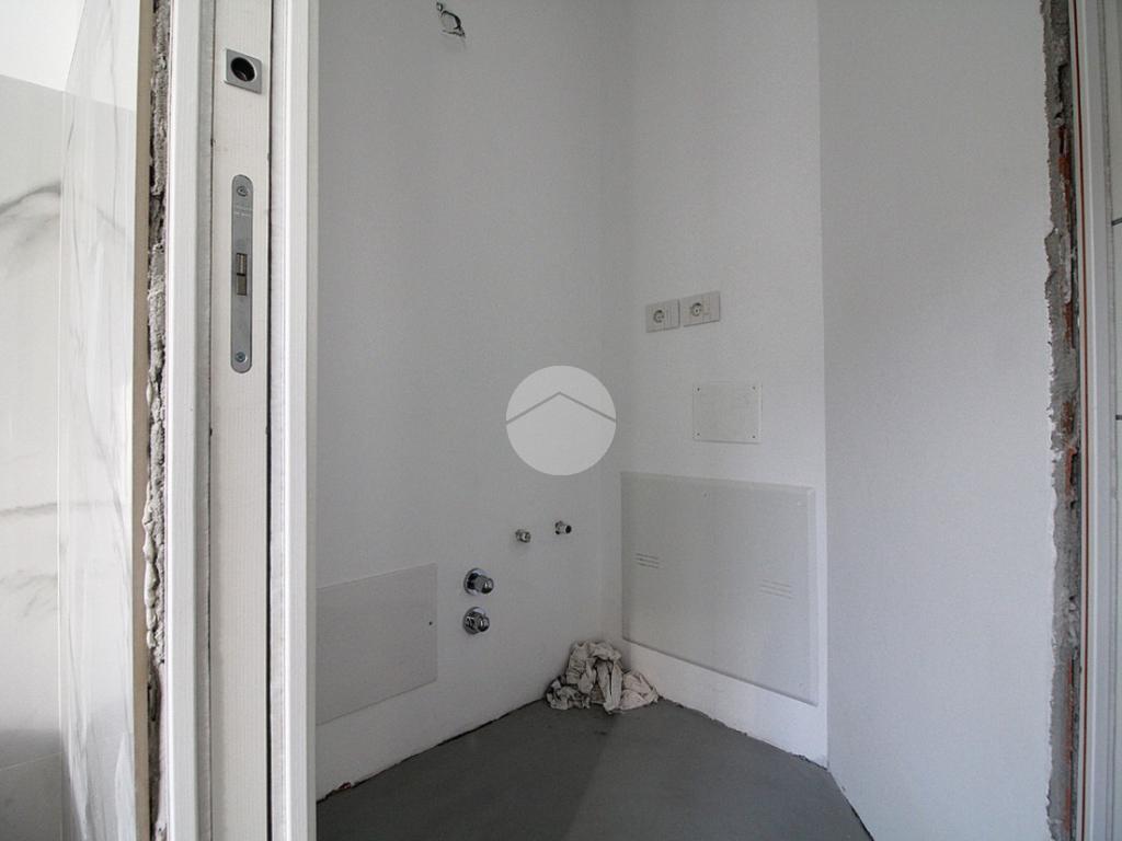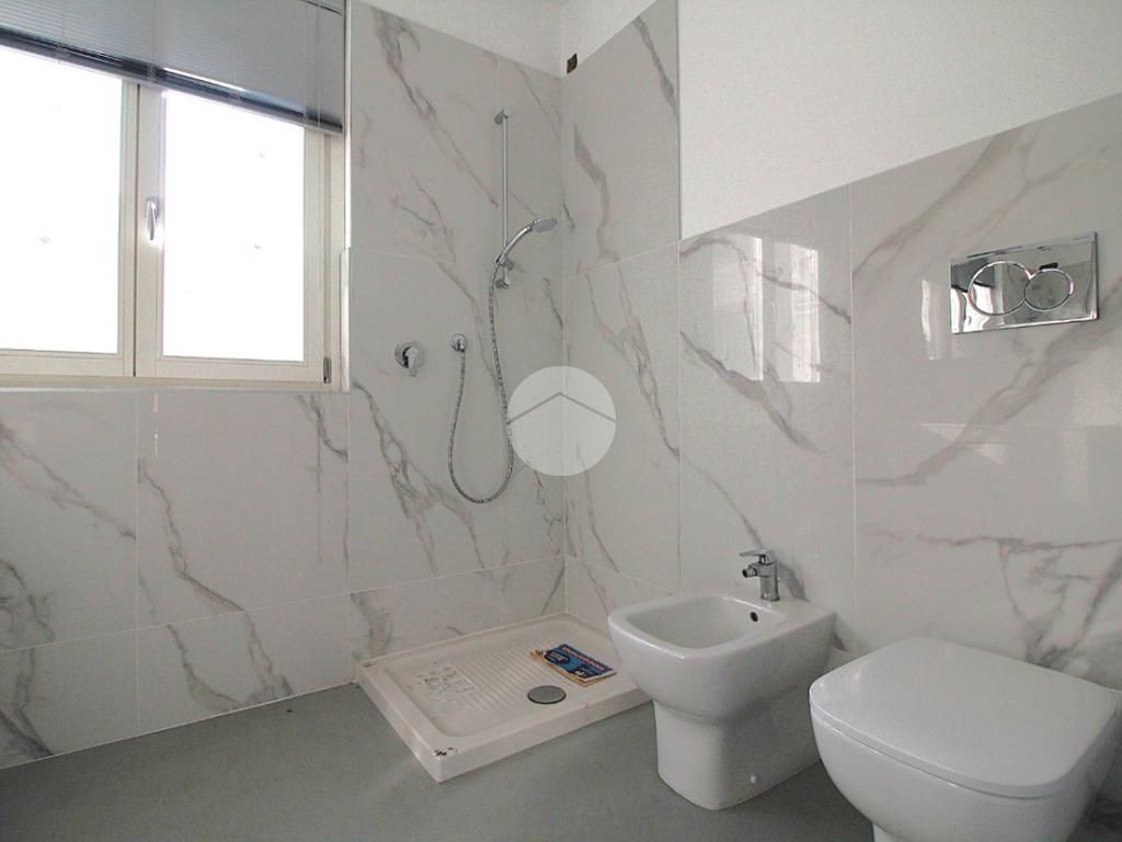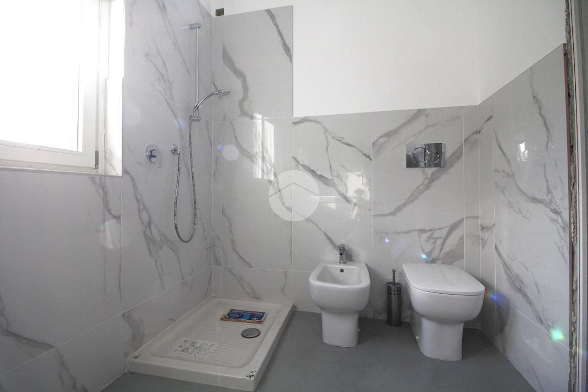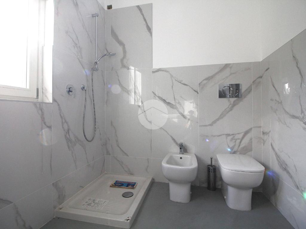 Il bagno è caratterizzato dal rivestimento in gres porcellanato effetto marmo, ed è rifinito con sanitari moderni filo muro e ampia doccia; Nell'antibagno è presente l'impianto di carico per la lavatrice.