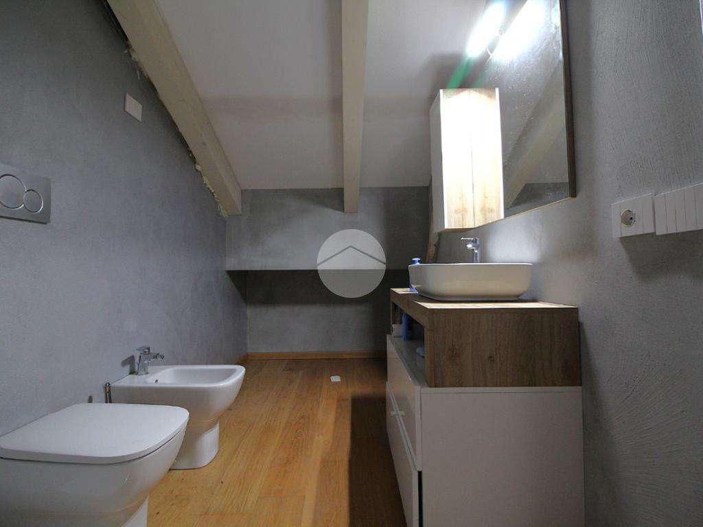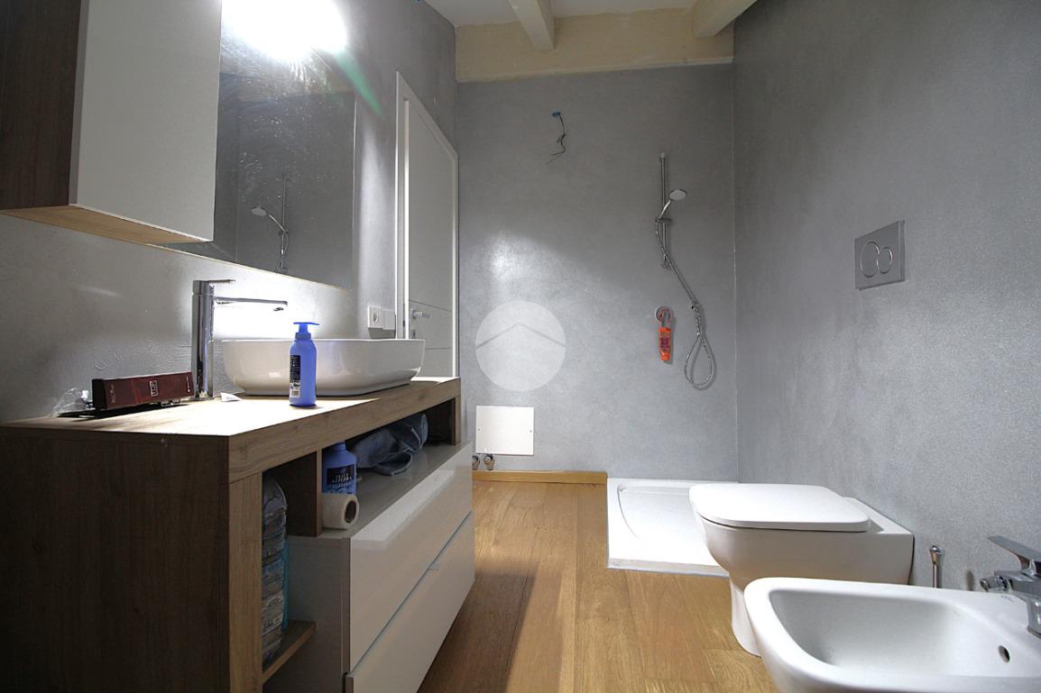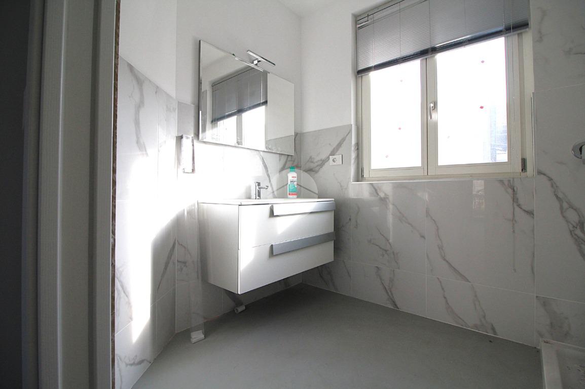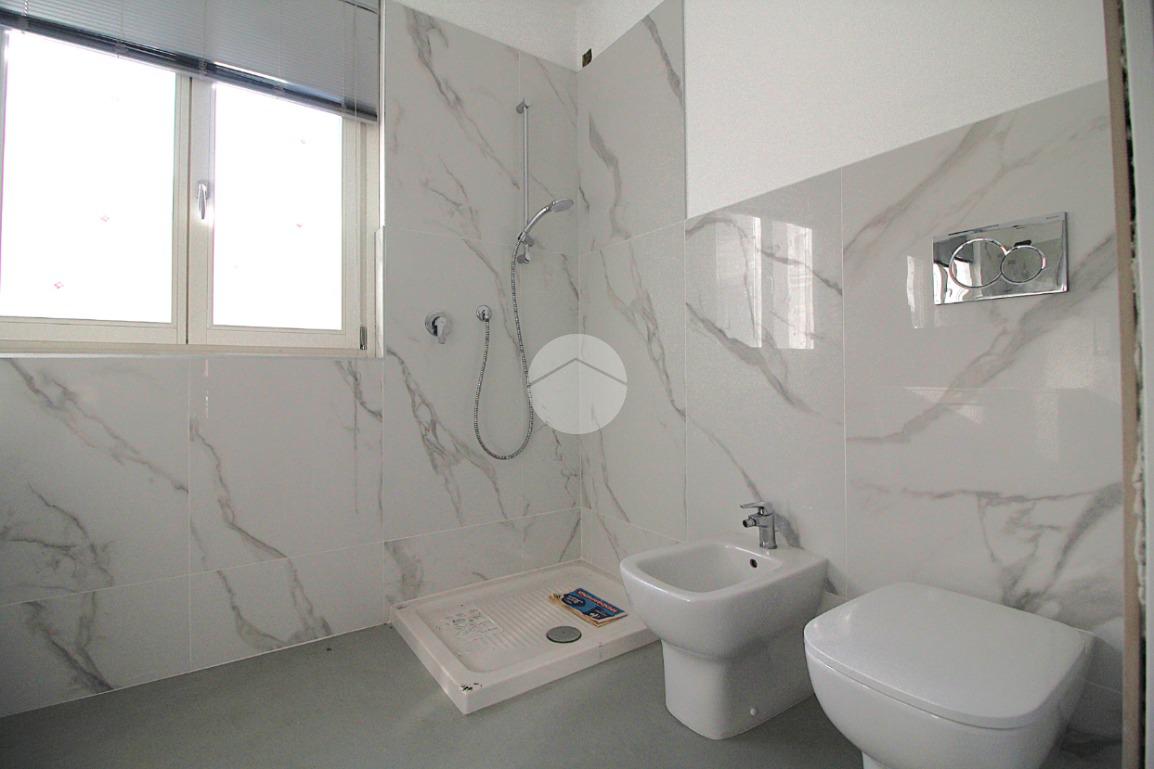 Il bagno è caratterizzato dal rivestimento in gres porcellanato effetto marmo, ed è rifinito con sanitari moderni filo muro e ampia doccia; Nell'antibagno è presente l'impianto di carico per la lavatrice.