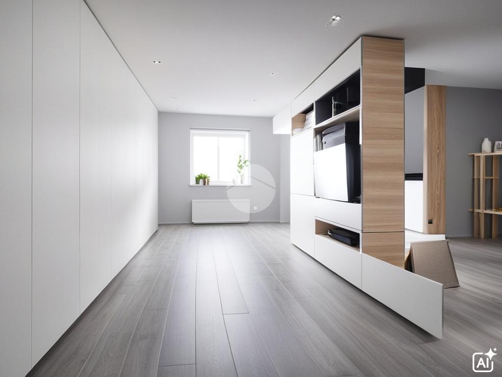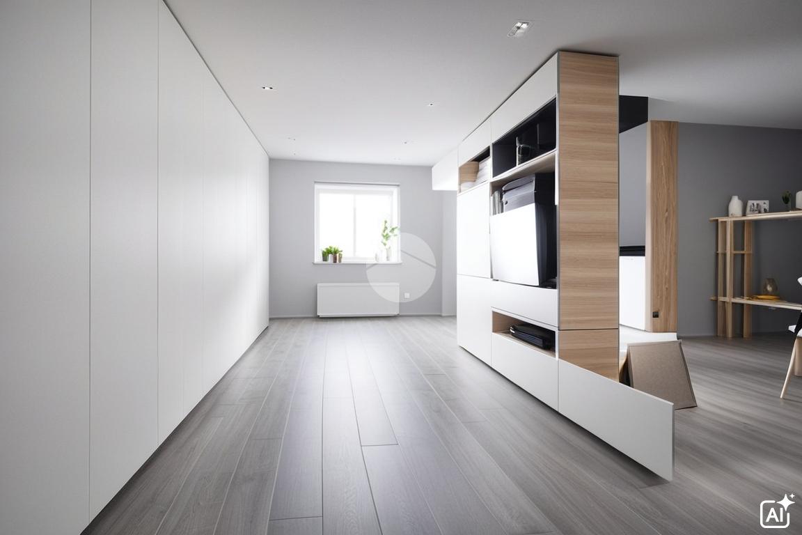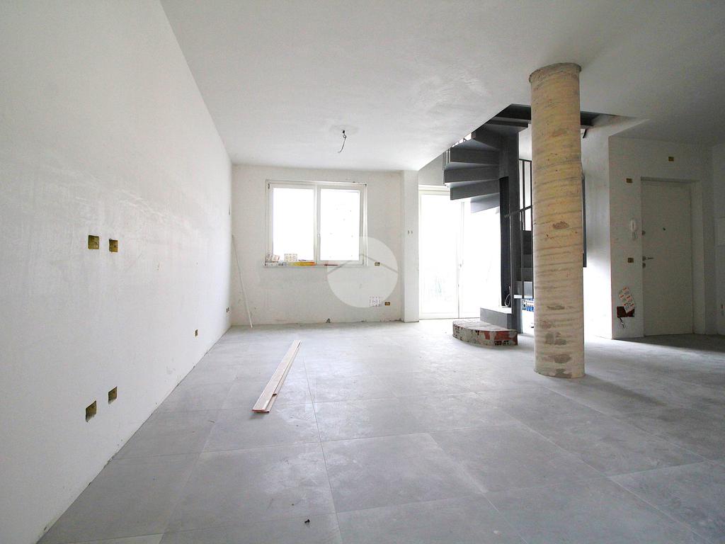 L'ambiente unico permette di creare una zona dedicata al soggiorno con la relativa parete attrezzata, mentre il resto della stanza può essere utilizzato per inserire la parete cottura.