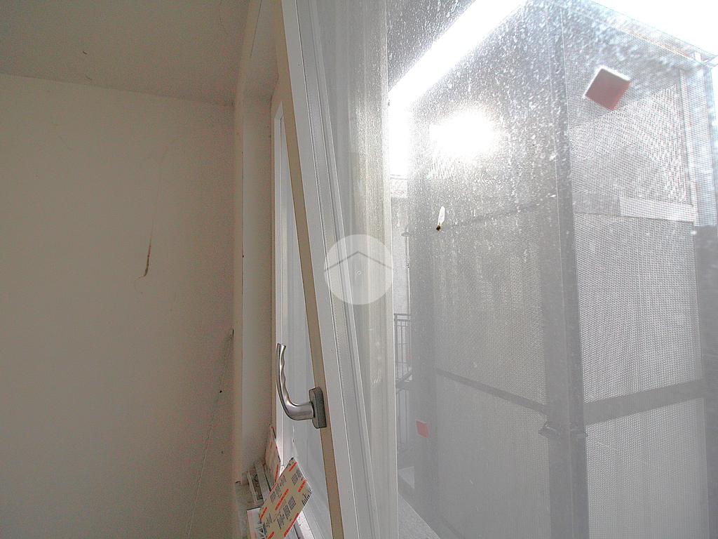 La stanza è resa luminosa dalla portafinestra con balcone alla francese e da altre due aperture che affacciano sul balcone.