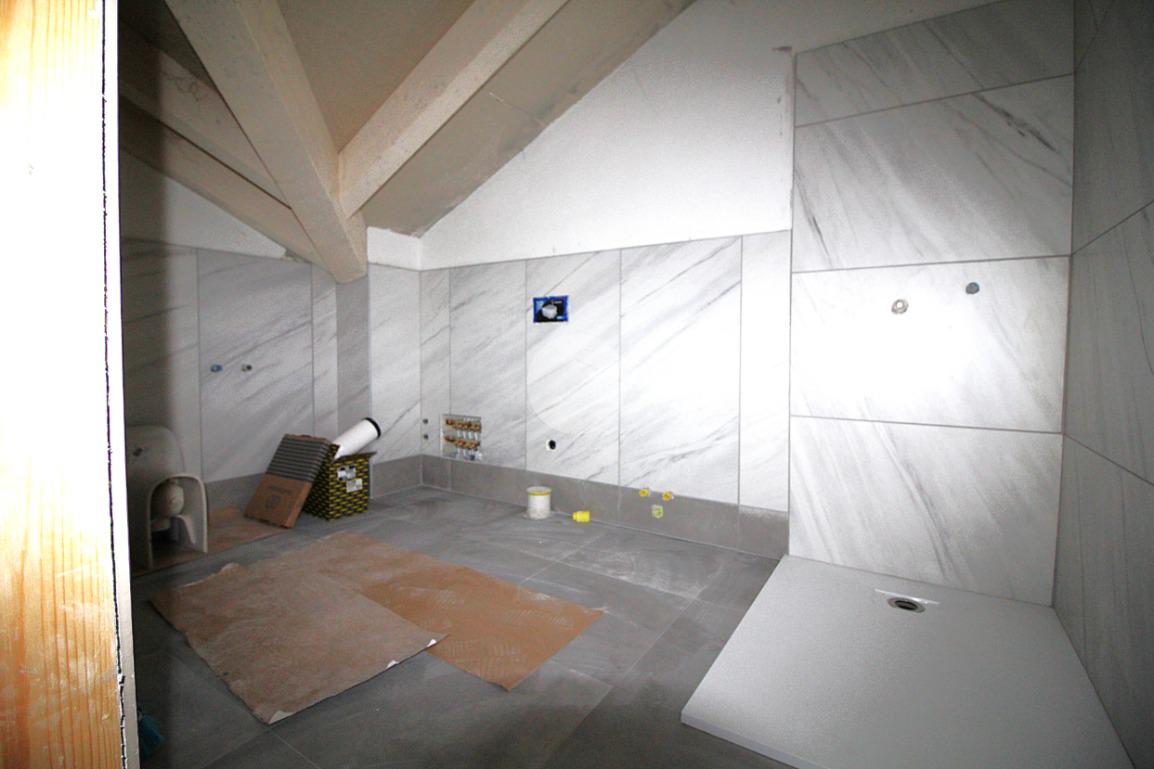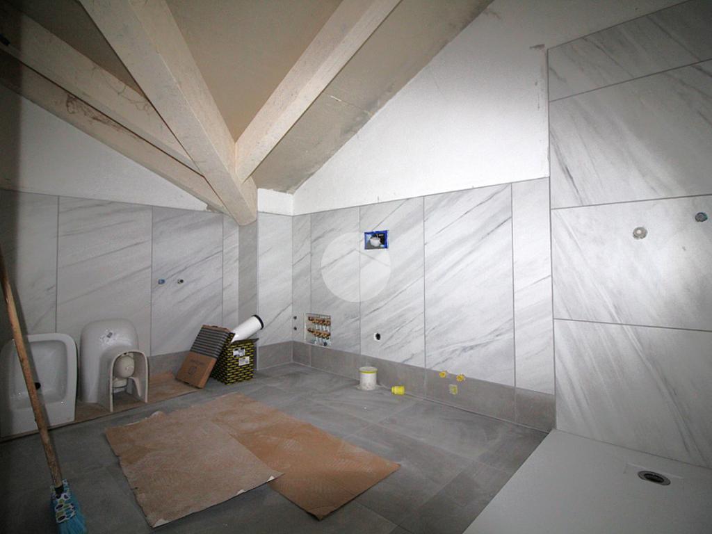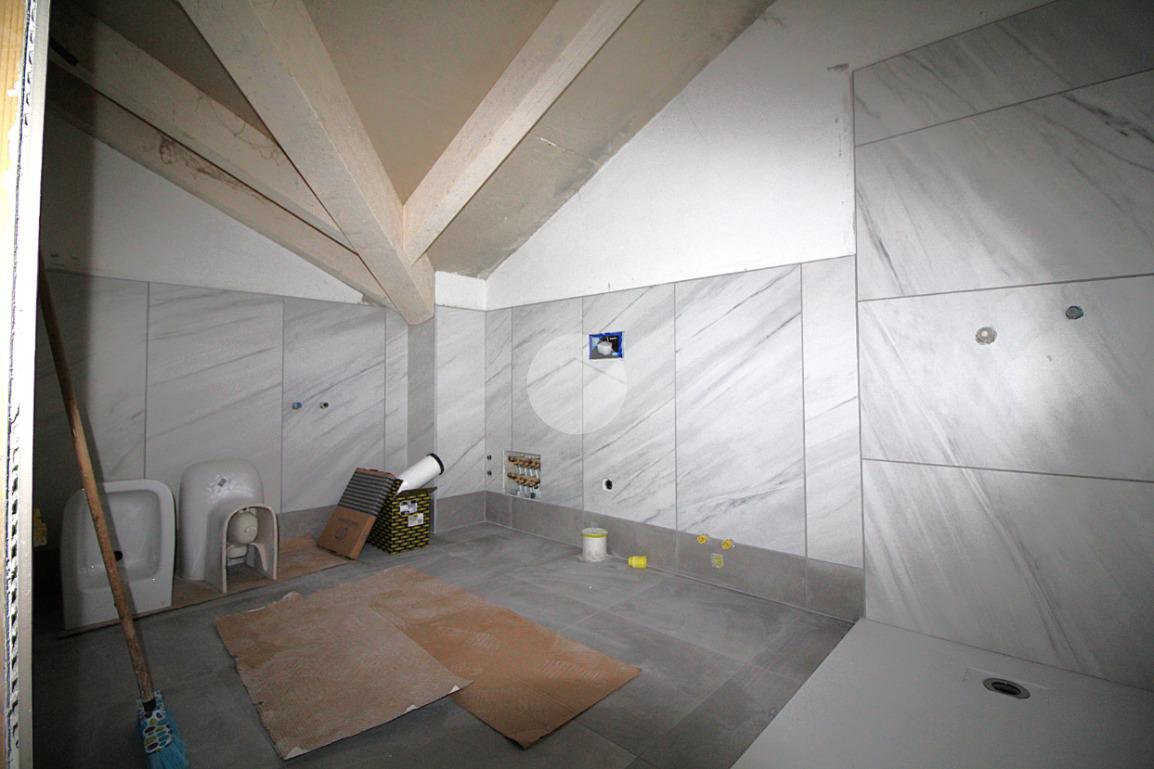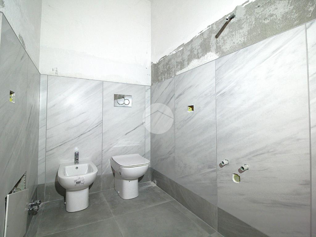 Il bagno è caratterizzato dal rivestimento in gres porcellanato effetto marmo, ed è dotato di sanitari moderni filo muro e ampia doccia. Nell'antibagno è presente l'impianto di carico per la lavatrice.