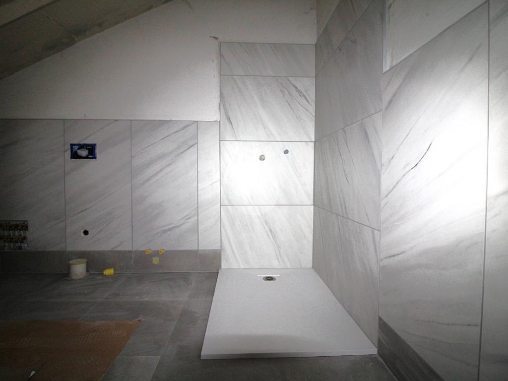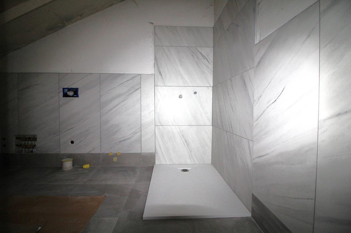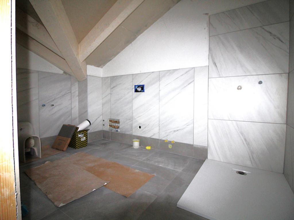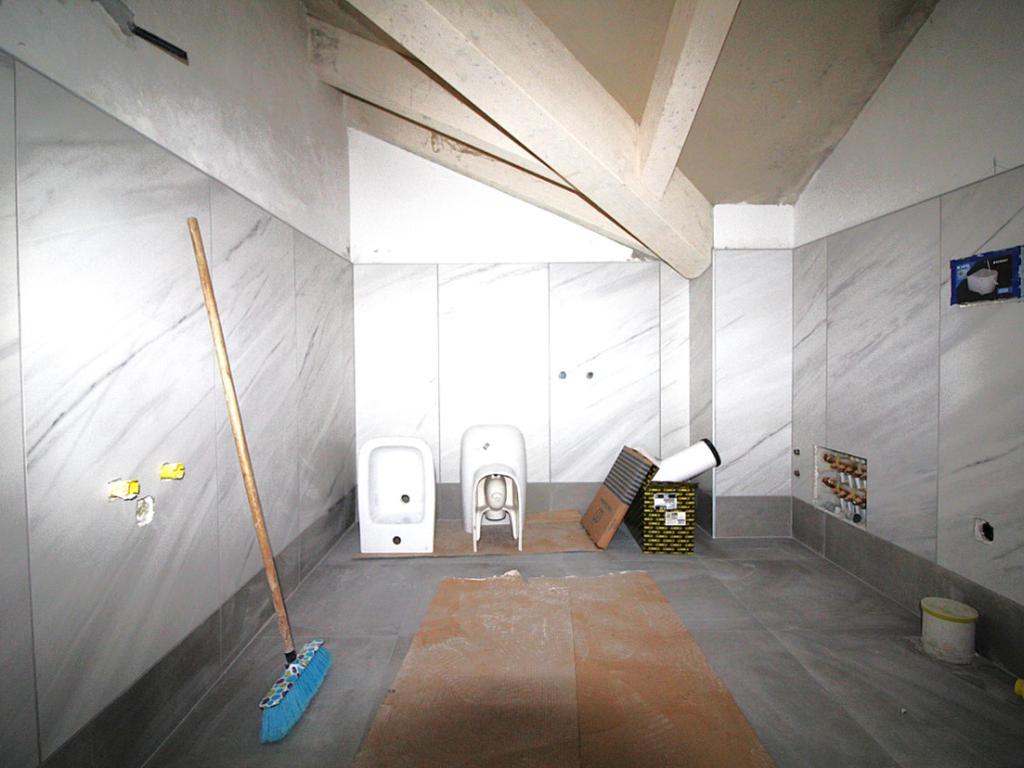 Il bagno è caratterizzato dal rivestimento in gres porcellanato effetto marmo, ed è dotato di sanitari moderni filo muro e ampia doccia. Nell'antibagno è presente l'impianto di carico per la lavatrice.