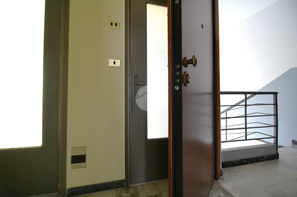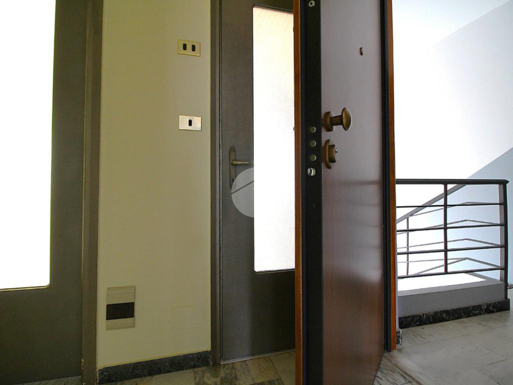 Il portoncino di ingresso blindato apre verso l'ingresso che disimpegna gli ambienti.