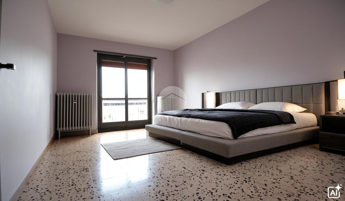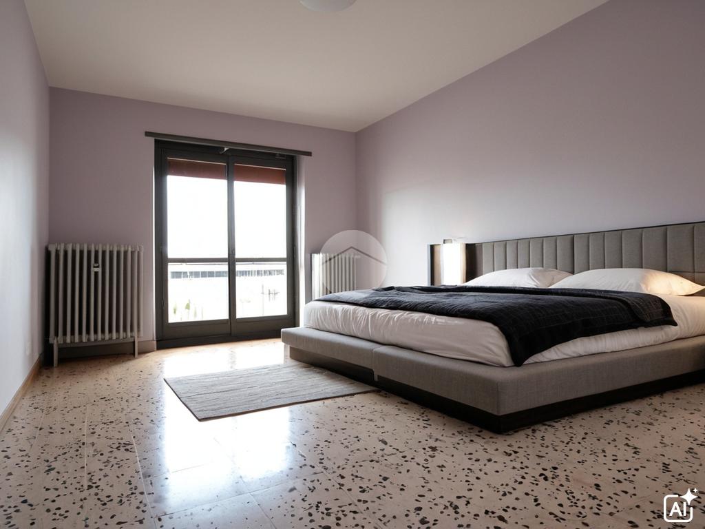 La camera da letto è di generosa metratura, ed è illuminata dalla portafinestra che conduce al secondo balcone.