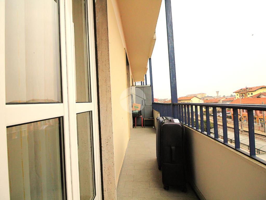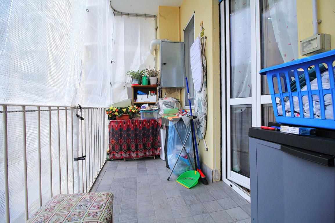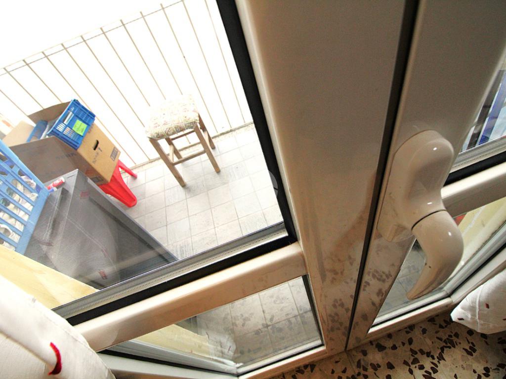 La portafinesta conduce al balcone che affaccia sull'interno cortile condominiale.