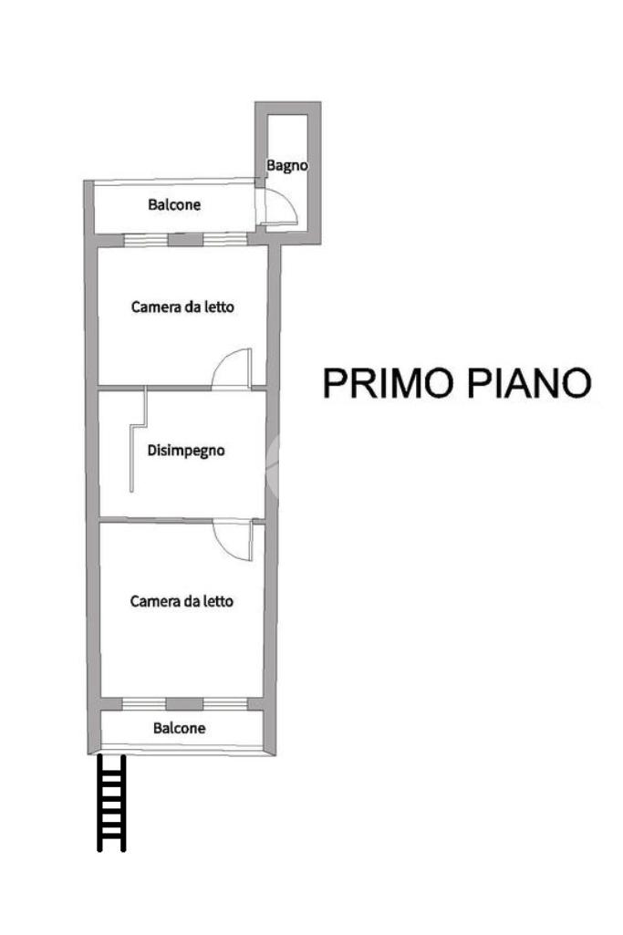 La prima stanza, attualmente utilizzata come cucina, è dotata di balcone di pertinenza con scala esterna.