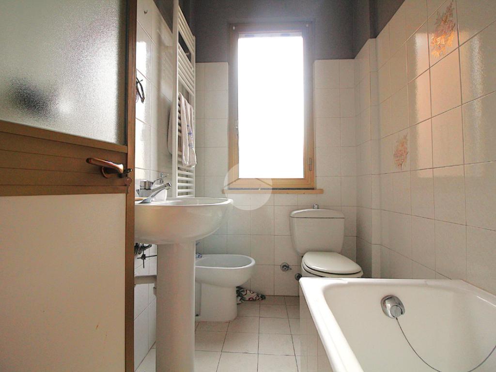 Il disimpegno conduce al primo bagno dotato di vasca.